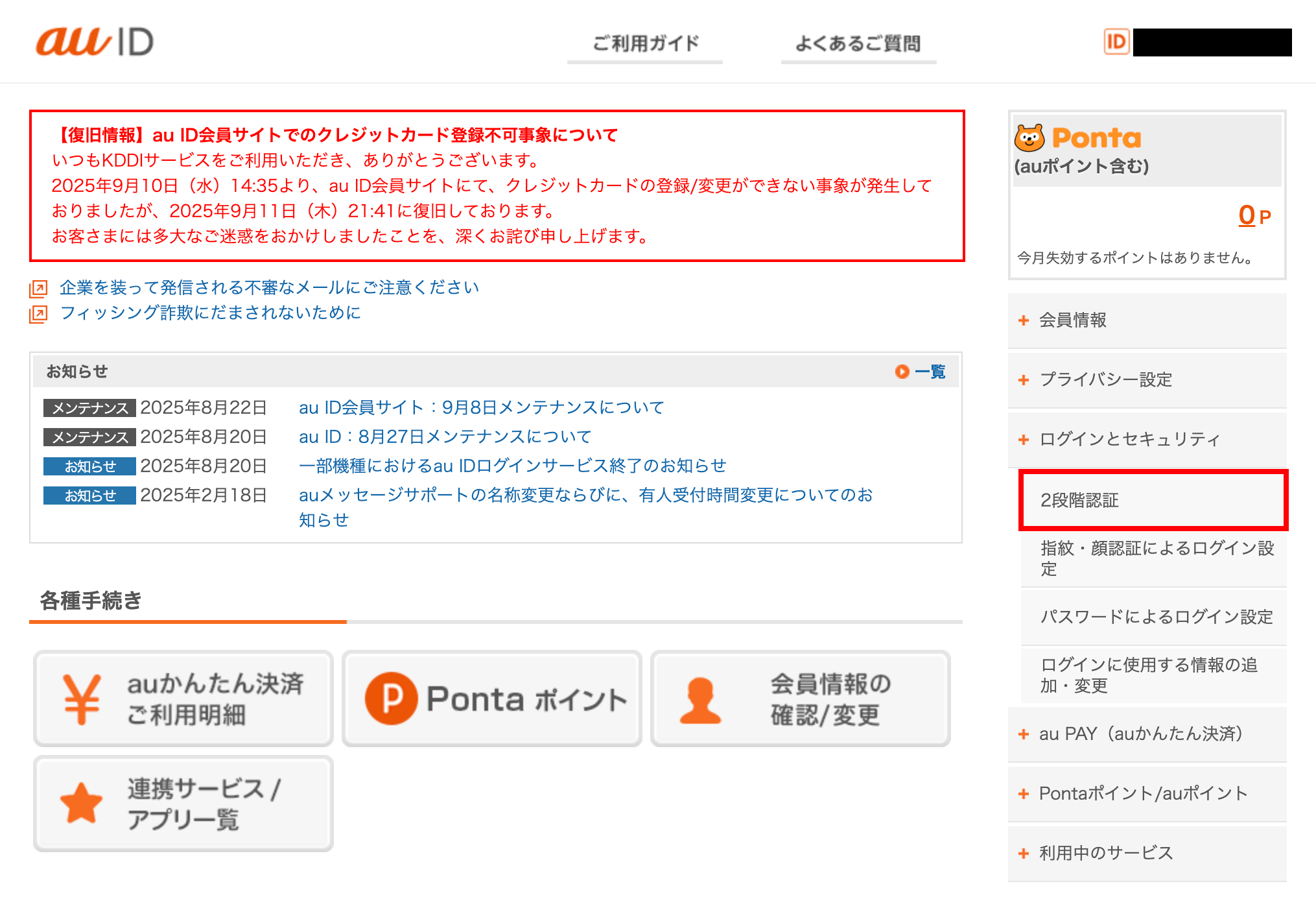 au ID会員情報サイトへアクセスし、au IDでログインします。